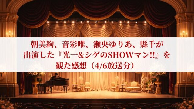 朝美絢、音彩唯、瀬央ゆりあ、縣千が出演した『光一&シゲのSHOWマン!!』を観た感想(4/6放送分)