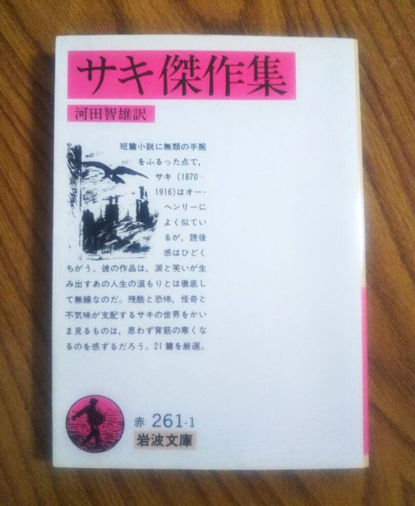 イギリスの小説家、サキ(Saki、本名:ヘクター・ヒュー・マンロー/Hector Hugh Munro)の短編小説集『サキ傑作集』(河田智雄・訳、岩波文庫)を読みました。