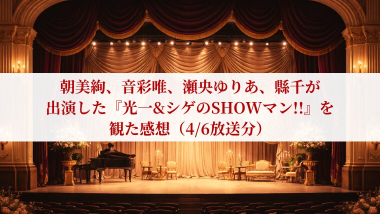 堂本光一さんと加藤シゲアキさんがMCを務めている『光一&シゲのSHOWマン!!』に朝美絢さん、音彩唯さん、瀬央ゆりあさん、縣千さんが出演しました。
